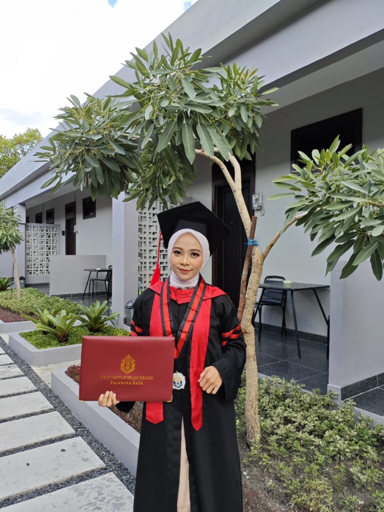 Palangka Raya, 26 November 2025 — Wisuda Sarjana XXXIX dan Magister XVI UIN Palangka Raya Tahun 2025. Khairun Jariyah, S.E., menjadi wisudawati terbaik pada Program Studi Manajemen Zakat dan Wakaf UIN Palangka Raya. Mahasiswi kelahiran Muara Teweh ini berhasil meraih IPK 3,86 dengan masa studi 3 tahun 11 bulan.